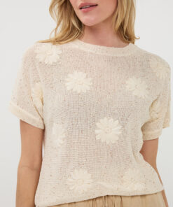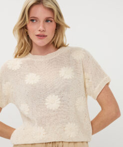 Esqualo HS26.02220 Sweater Embroidery Flowers Off White 120