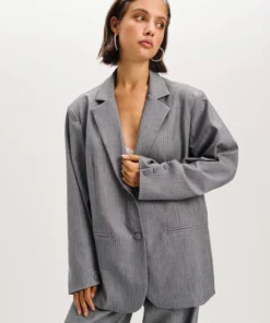 Refined R2511495846 Ladies Woven Oversized Blazer Mikky Light Grey 997